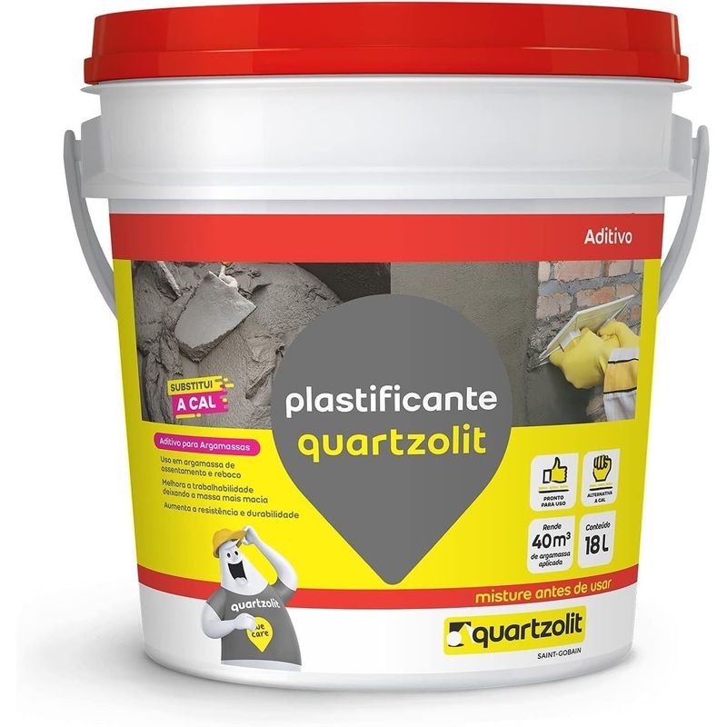 aditivo plastificante quartzolit é um aditivo incorporador de ar com ação plastificante indicado para aumentar a coesão e melhorar a consistência das argamassas, como argamassas de assentamento e revestimento, e rebocos internos e externos.