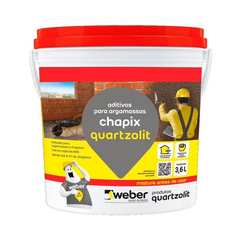 chapix quartzolit é um aditivo adesivo à base de PVA, desenvolvido para proporcionar melhor aderência e trabalhabilidade para argamassas e chapiscos cimentícios ao substrato.