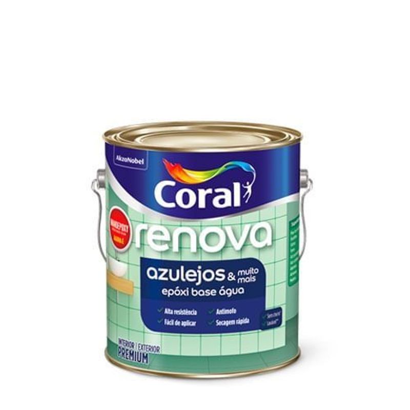 O Renova Azulejos, o Wandepoxy, da Coral é uma tinta epóxi base água que não precisa de catalisador, garantindo facilidade na aplicação, além de uma secagem rápida, proteção anti-mofo, alta durabilidade e resistência ao tempo. O Renova Azulejos depois de aplicado e já seco, cria uma película que protege e embeleza as paredes da sua casa, além de garantir resistência a riscos e abrasão em diversas superfícies.