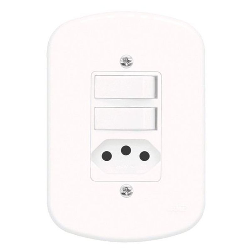 Interruptor blanc 2 teclas + tomada 10A com placa Fame