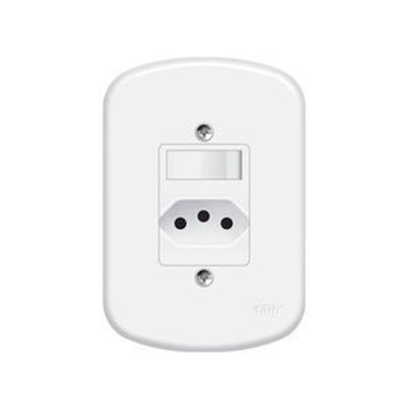 Interruptor blanc+ tomada com placa 10A Fame