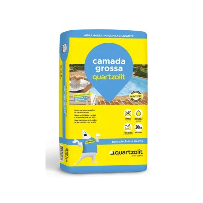 camada grossa quartzolit é uma argamassa pronta, bastando acrescentar água, indicada para a impermeabilizar e revestir áreas enterradas ou em contato com o solo.