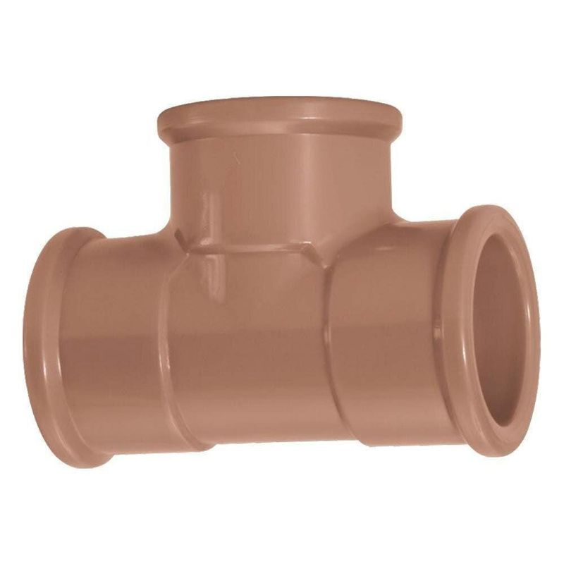 O tê soldável é uma conexão em formato de “T” usada para unir três tubos de PVC de mesmo diâmetro em sistemas de tubulação, permitindo a divisão ou junção de fluxos em sistemas de água e esgoto.