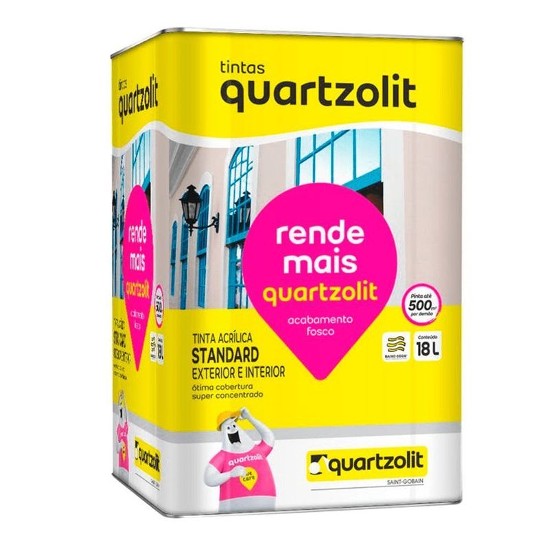 rende mais quartzolit é uma tinta acrílica standard de acabamento fosco, com alta qualidade e consistência, excelente cobertura e durabilidade, de baixo odor e secagem rápida.