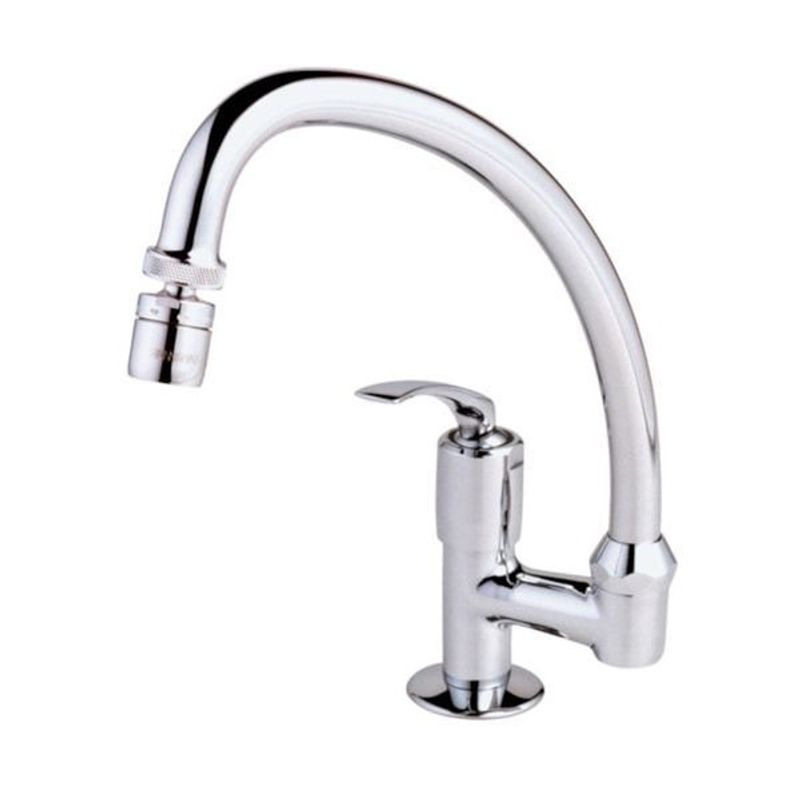 Torneira de cozinha com saída lateral e tubo alto móvel da Linha Pratika.