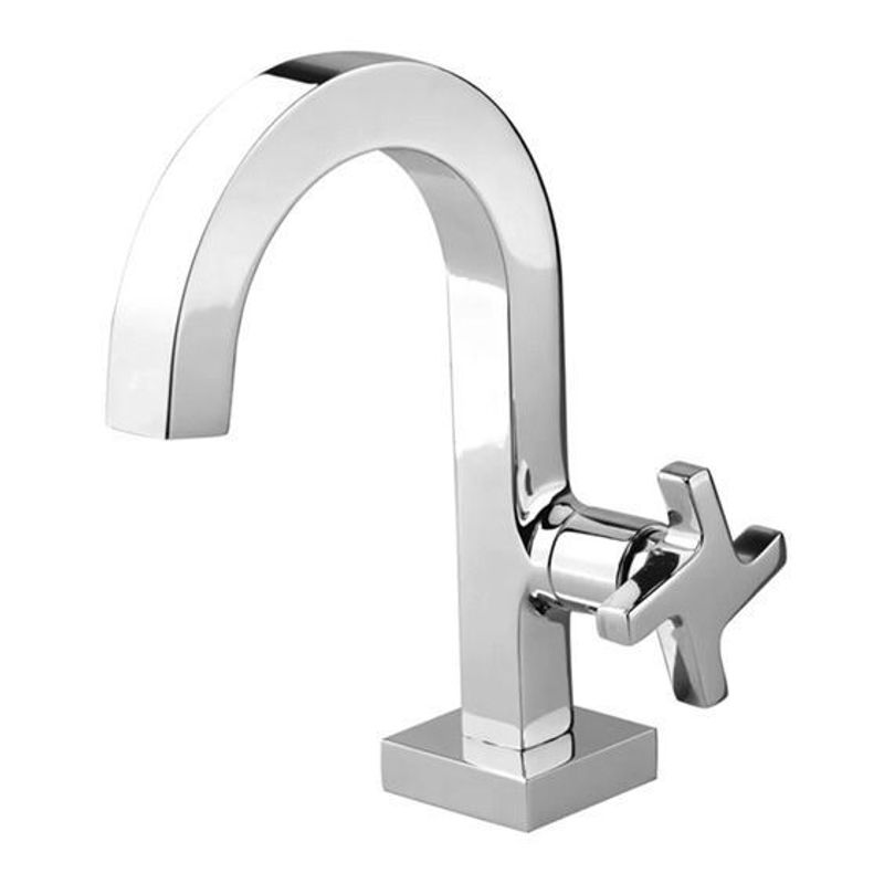 Torneira de lavatório banca tudo alto fixo com perfil quadrado. Acionamento de 1/4″ de volta com mecanismo cerâmico de alta performance. Entrada de água de 1/2″. A Linha Zeta possui leveza e movimento, com traços marcados pelo bom gosto. Acabamento tipo cruzeta, perfeita ergonomia para abrir e fechar o produto. Arejador embutido com jato concentrado e sem respingos. Acabamento superficial cromado de altíssima qualidade. Canopla quadrada.