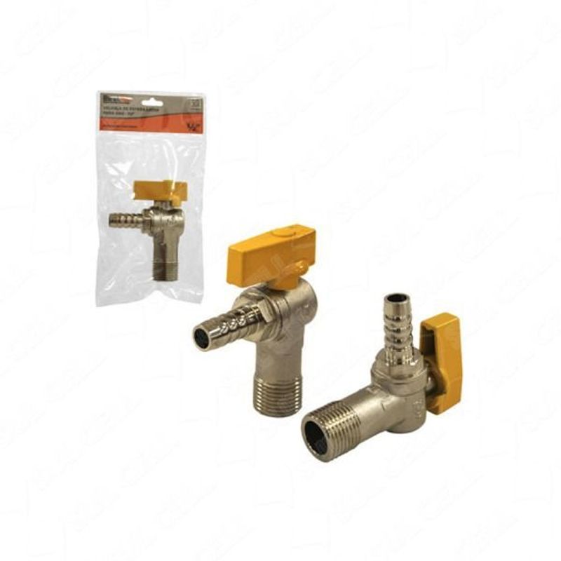 Valvula de Esfera Latao p/ Gas 90° 1/2″ Rosca Macho x Bico Macho (BFH2803)