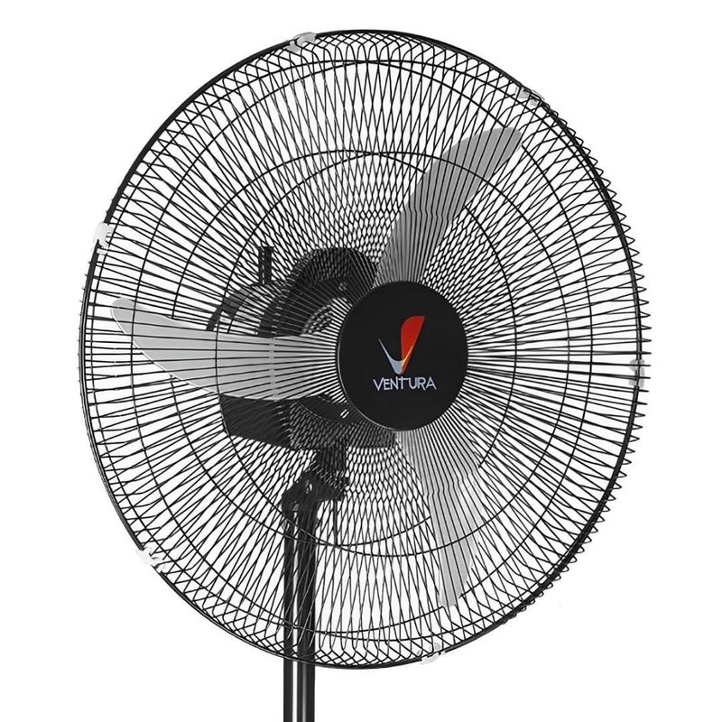 O ventilador de coluna Tron conta com grade de 60cm de diâmetro, altura máxima de 1,70cm e 3 pás em polipropileno na cor preta.