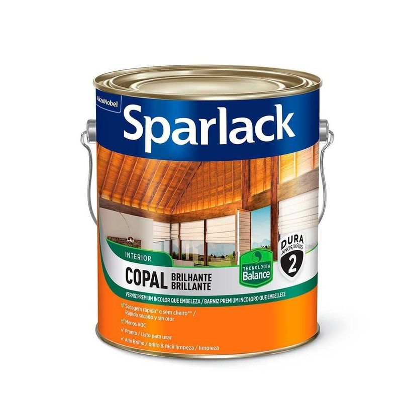 Sparlack Copal Balance Brilhante é um verniz incolor que embeleza. Com tecnologia Balance (pronto para uso, seca rápido e não deixa cheiro). Indicado para acabamento e proteção de superfícies de madeira.
