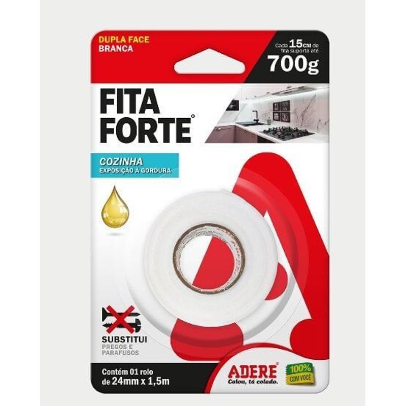 FITA ADERE FITA FORTE 24MMX1,5MT DUPLA FACE ESPUMA BRANCA AREAS GORDUROSAS