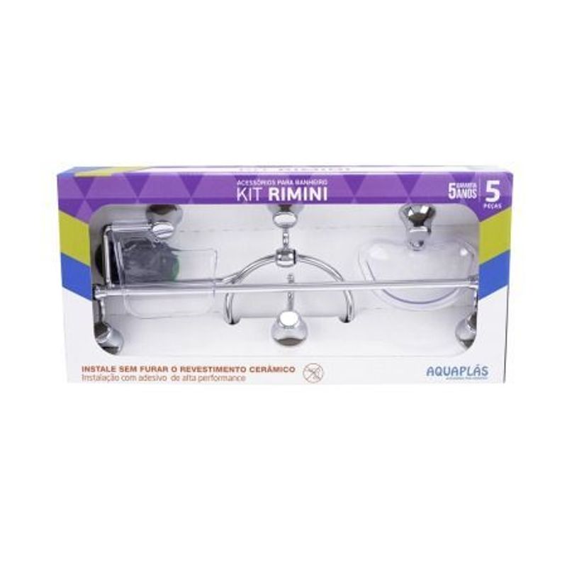 O Kit Rimini da Aquaplas combina funcionalidade e estética moderna para organizar seu banheiro com elegância. Produzido em ABS de alta resistência (plástico de engenharia), o conjunto apresenta um acabamento cromado de alto brilho com detalhes em cristal (transparente), proporcionando um visual leve e sofisticado que não oxida. O design é focado na praticidade de instalação e durabilidade, sendo ideal para ambientes litorâneos ou banheiros com alta umidade, onde acessórios metálicos comuns poderiam sofrer corrosão. O kit oferece os itens essenciais para o suporte de toalhas e papel higiênico, garantindo harmonia no acabamento do ambiente.