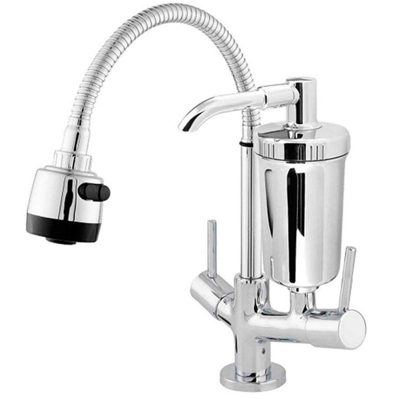 A Torneira Gourmet Soft da Leão Metais (Ref. 3274) é a solução “2 em 1” ideal para cozinhas modernas. Ela combina uma bica alta flexível, que facilita a limpeza de bancadas e utensílios volumosos, com um sistema de filtragem integrado. Fabricada com corpo em metal e bica/copo de filtro em ABS de alta resistência, ela oferece durabilidade e um acabamento cromado de alto brilho.